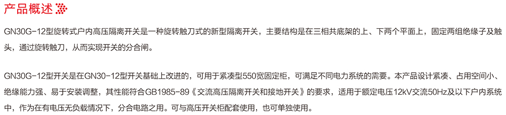 GN30G-12戶內(nèi)旋轉(zhuǎn)式高壓隔離開關(guān)